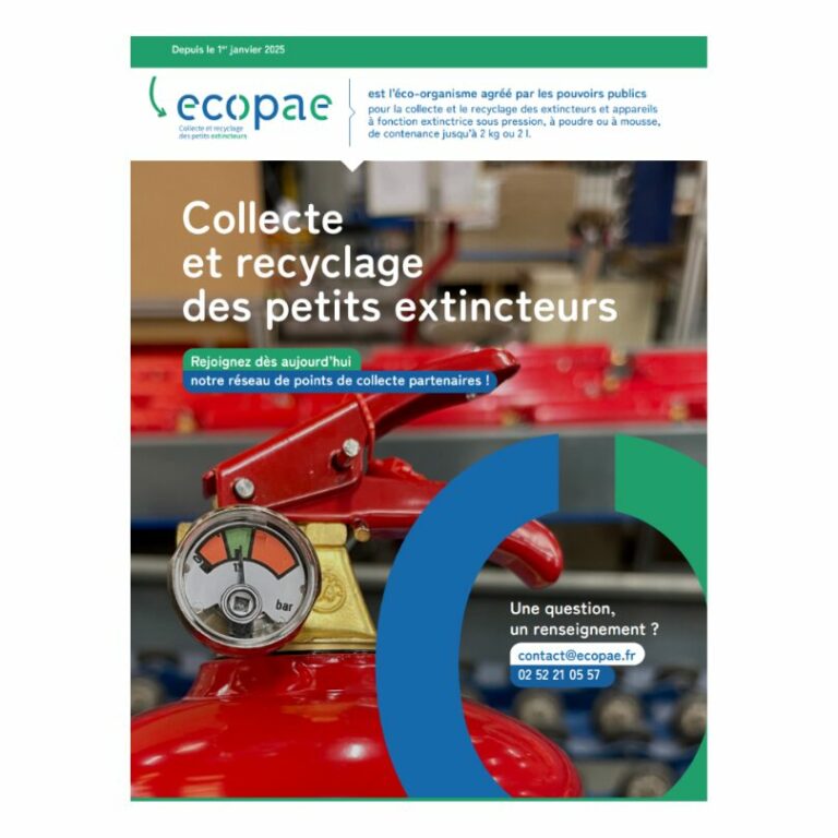 ECOPAE est l’éco-organisme agréé pour la collecte et le recyclage des petits extincteurs (≤ 2 kg / 2 L), en vigueur depuis le 1er janvier 2025. Retrouvez dans le document